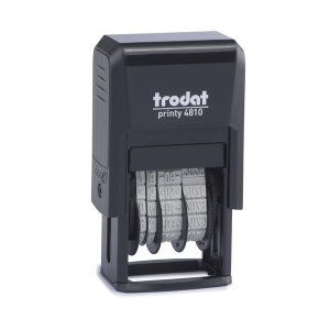 Samobarvicí datové razítko Výška data 3,8 mm Dodáváme s černým polštářkem Náhradní polštářky: černý 483.723, modrý 456.397, červený 483.733, zelený 532.145