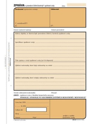 Zpráva o provedení kontroly spalinové cesty tiskopis obsahuje příjmový pokladní doklad samopropisovací nečíslovaný formát A5 na výšku obsahuje 100 listů odtržitelných perforací, se zakládacím …