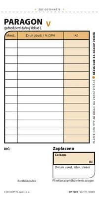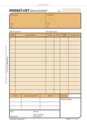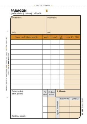 tzv. karbonová puťovkapropisovací přes karbonovou vrstru (podobné kopíráku)nečíslovanýformát A4 na šířkuobsahuje 100 listů odtržitelných perforací, se zakládacím děrováním