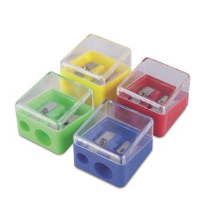 Plastové ořezávátko vybaveno noži dvou velikostí Čepele z nerezové manganové oceli 65 Mn Určeno k ořezávání tužek a pastelek do průměru 11 mm Rozměry ořezávátka: 30 x 29 x 42 mm Dodáváno v mixu barev