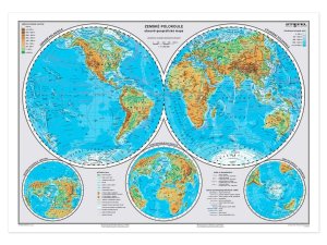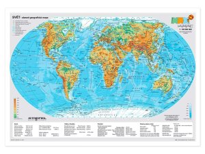 Mapa, která je nedílnou součástí hodin zeměpisu, obsahuje na dvou stranách dvě základní mapy světa: obecně zeměpisnou a politickou.