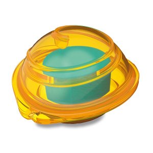 Ergonomicky tvarovaná pryž vhodná pro dětské ruce s vyobrazeným smajlíkem.