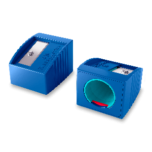 Dvojité plastové ořezávátko se zásobníkem Pro jumbo i standardní tužky Čepel z kvalitní oceli vyrobené v Německu Dodáváme v mixu 5 barev