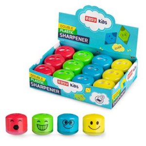 Plastové ořezávátko se zásobníkem, vzor smajlík, 2 dílné. 4 barvy a vzory; v balení: 12 ks;...