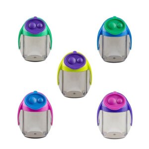Dvojité plastové ořezávátko se zásobníkem Pro jumbo i standardní tužky Čepel z kvalitní oceli vyrobené v Německu Dodáváme v mixu 5 pastelových barev