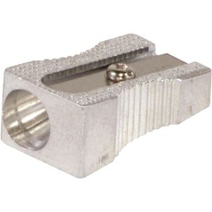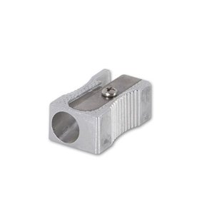 Ořezávátko z hliníku s jedním otvorem Vybaveno jednou čepelí z nerezové oceli Určeno k ostření tužek a pastelek o maximálním průměru 8 mm