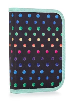 Jednochlopňový školní penál. Chlopeň s transparentní fólií, včetně rozvrhu Velké množství gumových úchytů na školní pomůcky.
