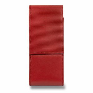 Pouzdro z měkké červené nappa kůže s vyraženými proužky na zavírací klopě, pro 2 pera.