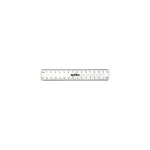 Ploché, základní pravítko s předtištěnou stupnicí o délce 15 cm.