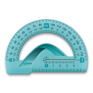Multifunkční trojúhelník slouží jako trojúhelník, poměrové pravítko, pravítko a úhloměr.