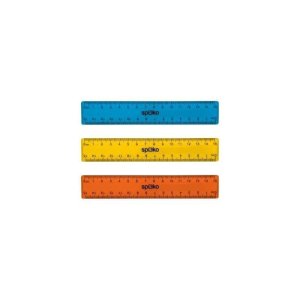 Ploché, základní pravítko s předtištěnou stupnicí o délce 15 cm.