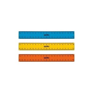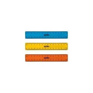 Ploché, základní pravítko s předtištěnou stupnicí o délce 15 cm.