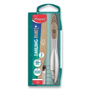 Kovové kružítko Maped Smiling Planet Study s ergonomickým úchopem, který je vyroben z 50% směsi dřevního vlákna s certifikací FSC.