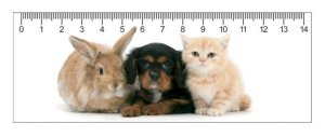 Ploché, základní pravítko s předtištěnou stupnicí o délce 15 cm.