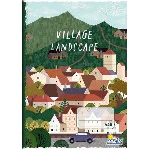 Sešit velikosti A4 s motivem vesnice.