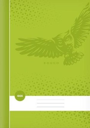 Školní linkovaný sešit ve formátu A4, v zelené barvě, s motivem sovy, v deskách z křídového papíru.