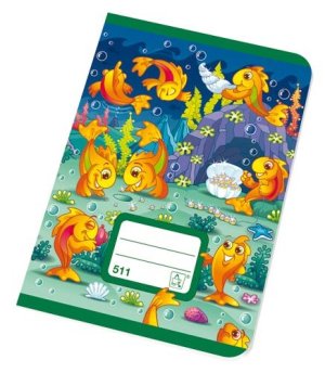 Sešit 512 Mermaid, velikost A5, 10 listů, nezbytná součást školních potřeb, vhodný pro žáky 1. ročníku, široké řádky 16 mm.