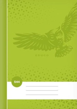 Školní linkovaný sešit ve formátu A5, v zelené barvě, s motivem sovy, v deskách z křídového papíru.
