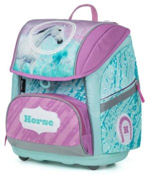 Školní aktovka řady Premium FLEXI s motivem koně je určená pro žáky 1. a 2. třídy, vyznačuje se jedinečným systémem FLEXI LINE, díky kterému jsou záda aktovky nastavitelné přesně podle výšky dítěte.