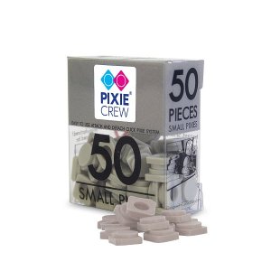 Balíček přibližně 50 kusů malých silikonových pixelů v béžové barvě.