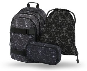 Školní set obsahuje aktovku, sáček na cvičky a jednopatrový penál se 2 chlopněmi bez náplně.