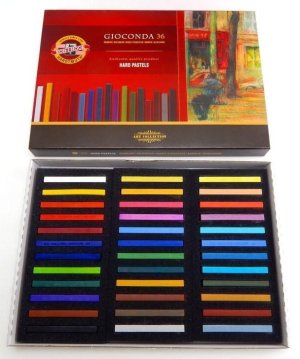 Soupravy uměleckých trvdých pastelů hranolovitého tvaru.