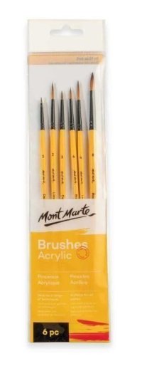 Sada 6 taklonových štětců na akryl s dřevěnou rukojetí - detailingový č. 1 a 3, liner č. 2 a 4, kulatý č. 4 a 8.