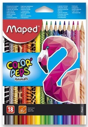 Souprava 18 kusů pastelek se zvířecími motivy v pouzdře.