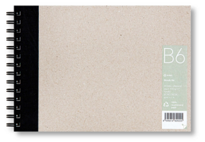 Skicák POSCA má matně černé pevné desky s barevným logem POSCA a červený popruh pro zabezpečení.
