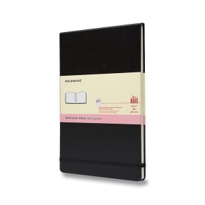 Akvarelový skicář je vhodný pro malby vodovými barvami, s pevnou, ve hřbetu šitou vazbou v kartonových deskách, obepnutý pružnou páskou proti samovolnému otevírání.