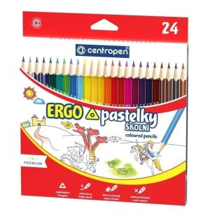 Trojúhelníkové školní pastelky, zářivé barvy, ERGO držení, lehce se ořezávají, odolné proti lámání.