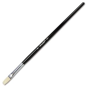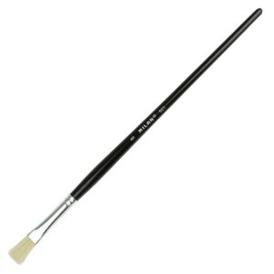 Plochý štětec z odolných a pevných vepřových štětin je vhodný pro olejomalbu či malbu akrylovými barvami Krátká rukojeť s pochromovanou objímkou