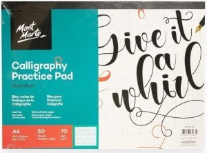 Cvičebnice kaligrafie – blok s 50 listy, přírodní bílý papír 70 g/m2, podložka se šikmou mřížkou.