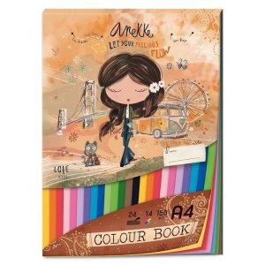Blok barevného papíru velikosti A4 s designem známého děvčátka Anekke z dílny španělské návrhářky. • blok obsahuje 24 barevných listů v 14 barvách • list barevného papíru váží 150g …