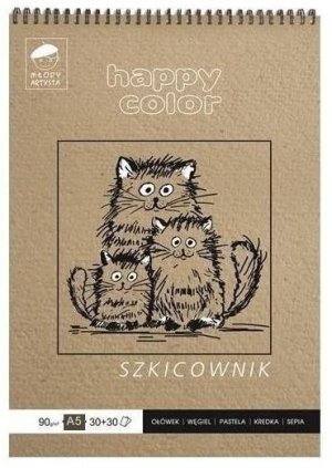 Spirálový skicák s tvrdými deskami obsahuje dva druhy papírů – jemně zrnitý přírodně bílý s gramáží 90g/m2 a lehce drsnější okrový papír o gramáži 80g/m2.