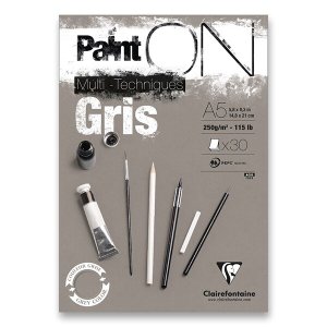 Blok Clairefontaine Paint'ON Grey má šedý jemně hrubý papír ze 100% celulózy.