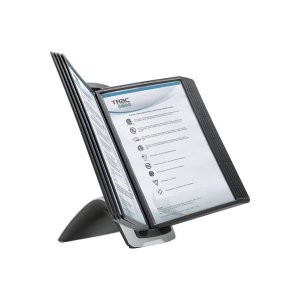 Kompaktní pultový stojan s 5 černými rámečky z polypropylenu V sadě je 5 kapes formátu A4 Šetří váš prostor a peníze Kompaktní podstavec zaručuje díky své hmotnosti vysokou stabilitu