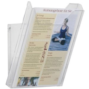 Zásobník na prospekty pro informace ve formátu A4 až do formátu 311 x 240 mm Skládá se z misky, 2 nosných prvků a čelního panelu; lze jej použít podle potřeby jako nástěnný nebo k postavení na stůl Ideální …
