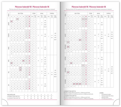 • pracovní plánovací kalendář