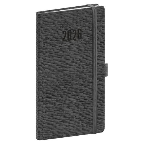 Nová řada diářů v moderním designu doplněném o pevnou gumičku a poutko na pero. Týdenní rozložení s česko-slovenským kalendáriem a doplňkovou angličtinou, němčinou, maďarštinou a ruštinou.
