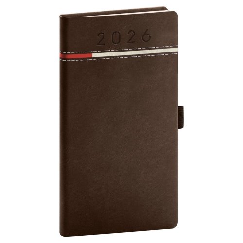 Kapesní diář Tomy 2026 v hnědo-červené barvě.