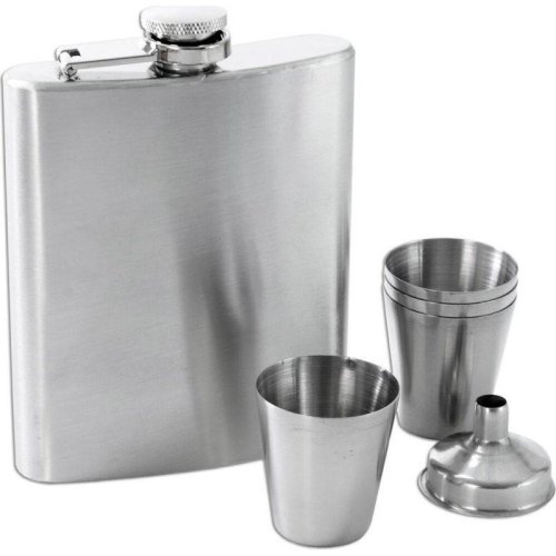 Láhev kapesní, 4 pohárky a nálevka v dárkové krabičce