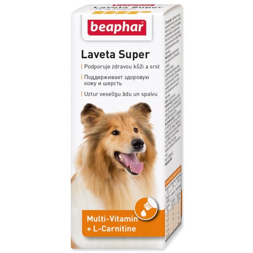 Laveta Super je doplňkové krmivo pro psy ve formě kapek, které jsou speciálně vyvinuté pro podporu, lepší kondici a vzhled srsti.