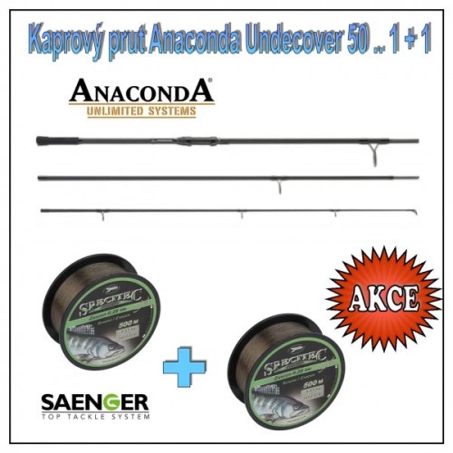 Skvělý set obsahuje dva kvalitní kaprové pruty za skvělou cenu. Součástí setu jsou dvě cívky vlasce Saenger . Set obsahuje: 2ks prutů + 2ks vlasce Kaprový prut Anaconda Undercover 50 3-dílnýNenápadný, přesto velmi elegantní, spolehlivý a oblíbený prut. I přes své štíhlé, uhlíkové tělo je velmi silný a je spolehlivý i při dalekých hodech s těžší zátěží. Základní model je nabízen ve verzi třídílný a uspokojí každého i velmi náročného rybáře. První očko je velikosti 50.