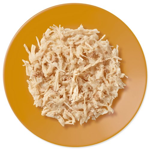 Maso a živočišné produkty (kuřecí prsa 55%, kuřecí játra 7%), rostlinná želatinová složka 1%.