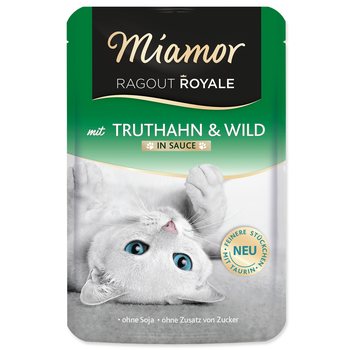 Jemné kousky v delikátní šťávě, gurmánský pokrm s krocaním masem a zvěřinou – zcela bez hovězího masa. Obohaceno o vitamíny.