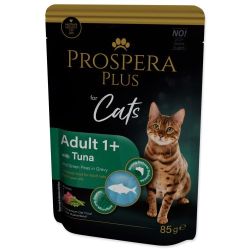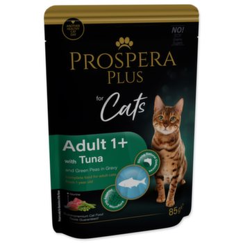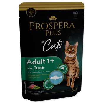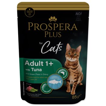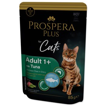 Kompletní krmivo pro kočky od 1 roku v podobě kapsičky s tuňákem a hráškem.