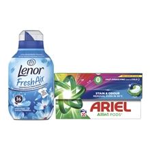 Kapsle na praní Ariel Color All in 1 + Lenor Fresh Wind – 30 dávek Dopřej svému barevnému prádlu dokonalou čistotu a svěží vůni Kapsle Ariel Color All in 1 účinně odstraňují i odolné a zaschlé skvrny …