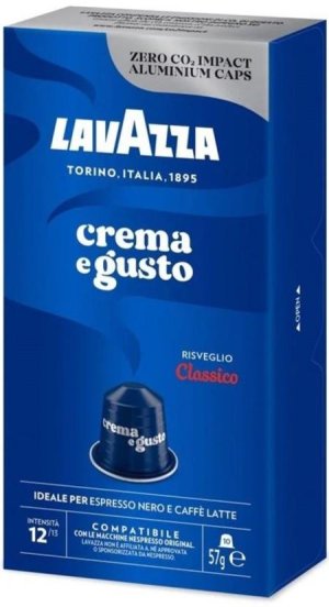 Lavazza Crema e Gusto pro Nespresso, s intenzitou 12/13, nabízí směs zrn arabika a robusta z Jižní Ameriky a Afriky. Tato káva se vyznačuje krémovým profilem s tóny tmavé čokolády, dřeva a koření, což jí dodává plné tělo a intenzivní aroma.
