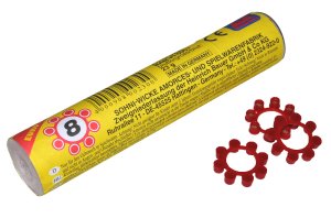 Balení kapslíků obsahuje 48 věnečků po 8 ranách. Baleno v plastové dózičce. Rozměry cca 13 x 2,5 cm. Věk 3+